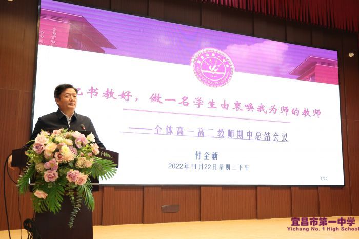 11月22日下午,我校在墨池书院二楼学术报告厅召开2022年秋季学期期中教学总结暨表彰大会。大会由教务处主任赵勇主持,高一高二全体教师参加。