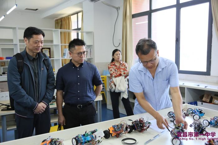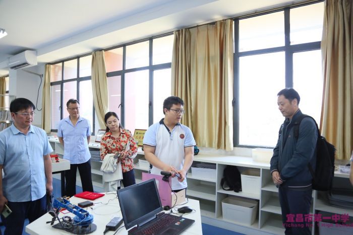 调研工作组先后参观了学生成长发展指导中心、创新实验班、通用技术教室、创客实验室、机器人实验室、科技拔创实验室等学校科学教育功能室。学校领导介绍了我校在科学教育方面的创新举措和成效,包括课程设置、功能室配置、科创活动和竞赛成果等。正在进行科技制作的学生向来访的专家介绍作品的工作原理,展示科创成果。