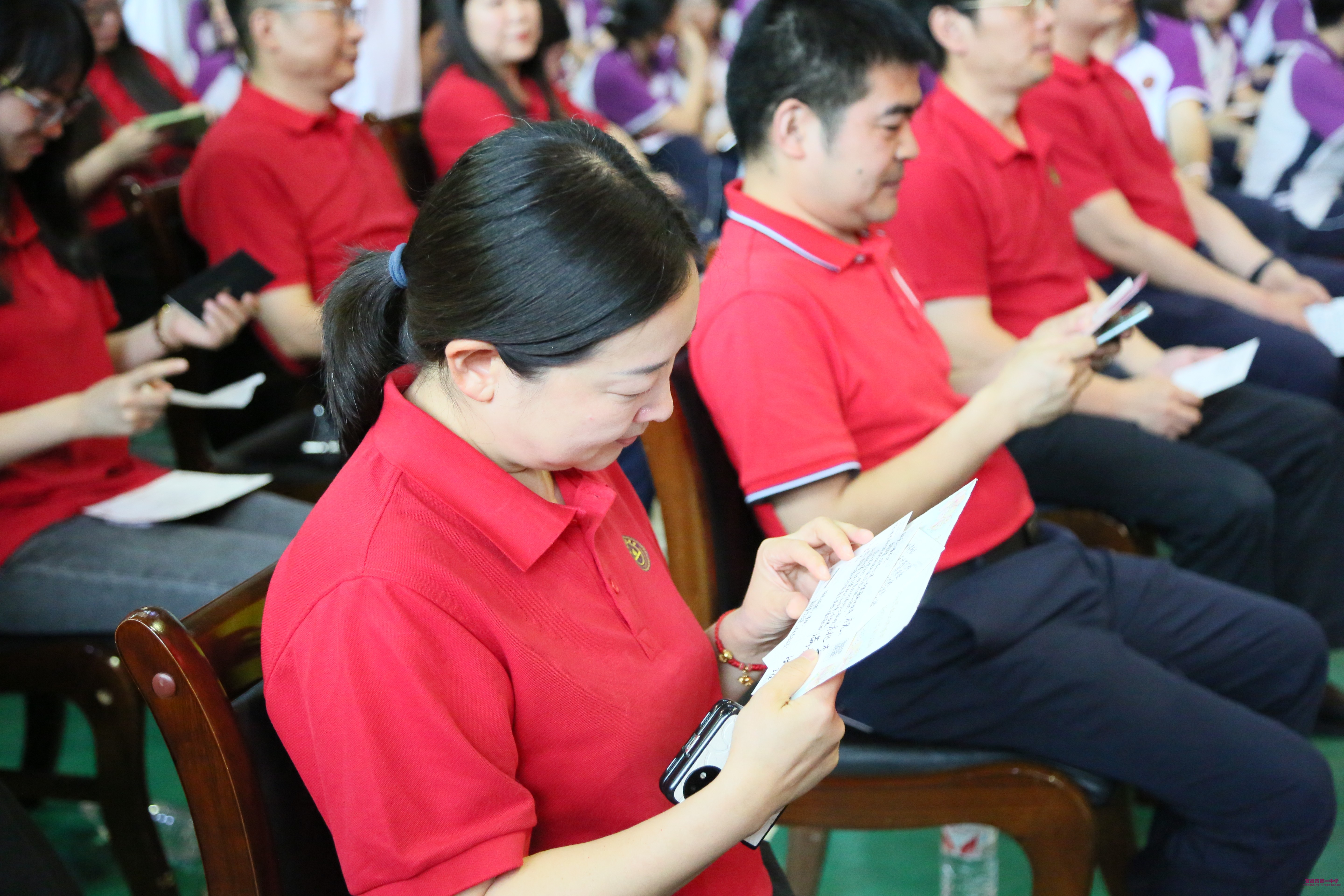 在2222班陈雨泽同学的带领下,全体高三学子肃立,高举右拳,以青春的名义庄严宣誓,铿锵的誓言响彻体育馆,宣告着他们从一中出发,勇担责任的决心。