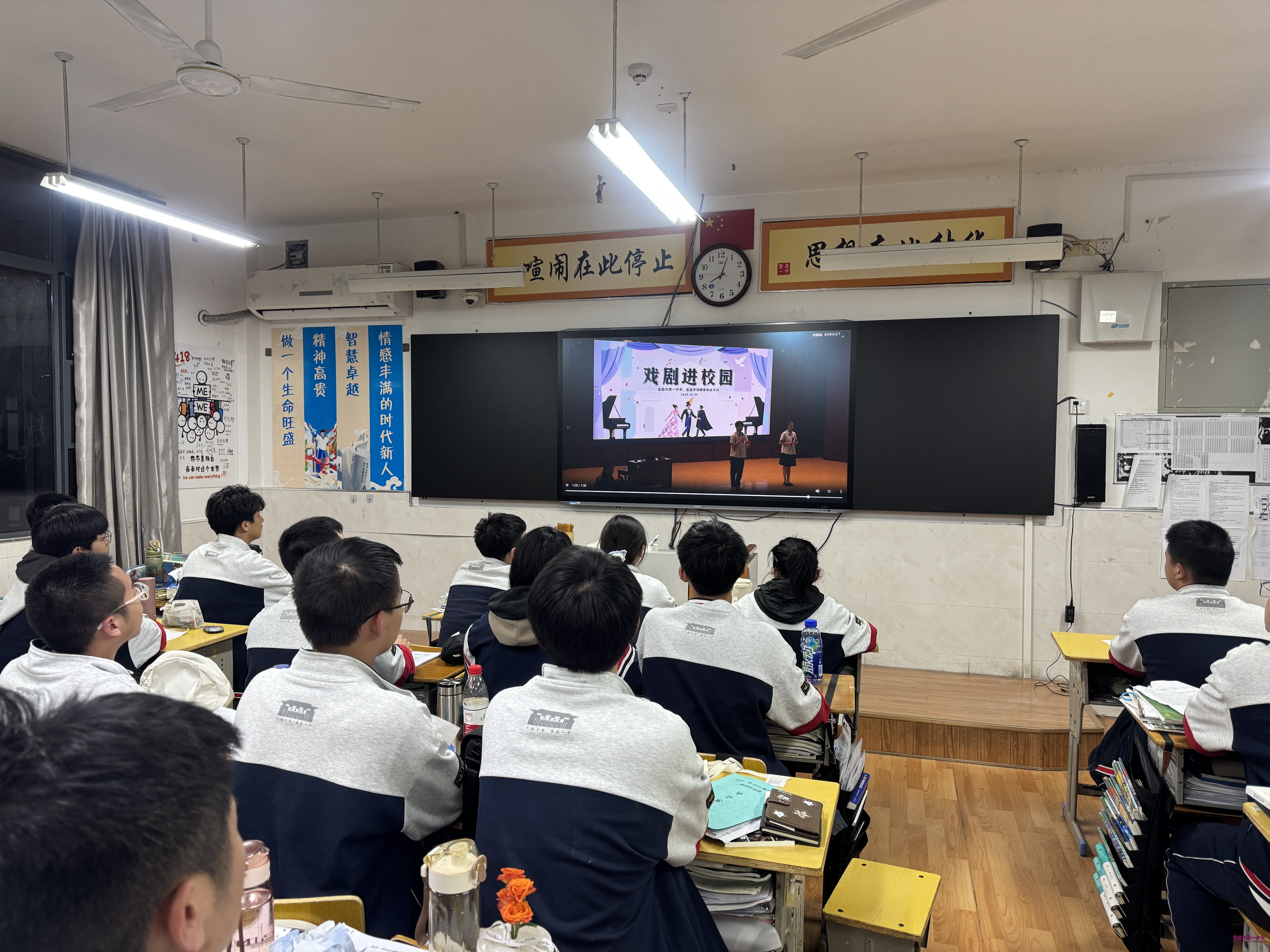戏剧家协会丁敏主席、表演老师裴智超和李思雨应邀莅临,我校副校长黄文坚老师一同出席活动,高一、高二年级部分班级学生现场参与,全体学生在教室同步观看直播,共同感受戏剧艺术的独特魅力。