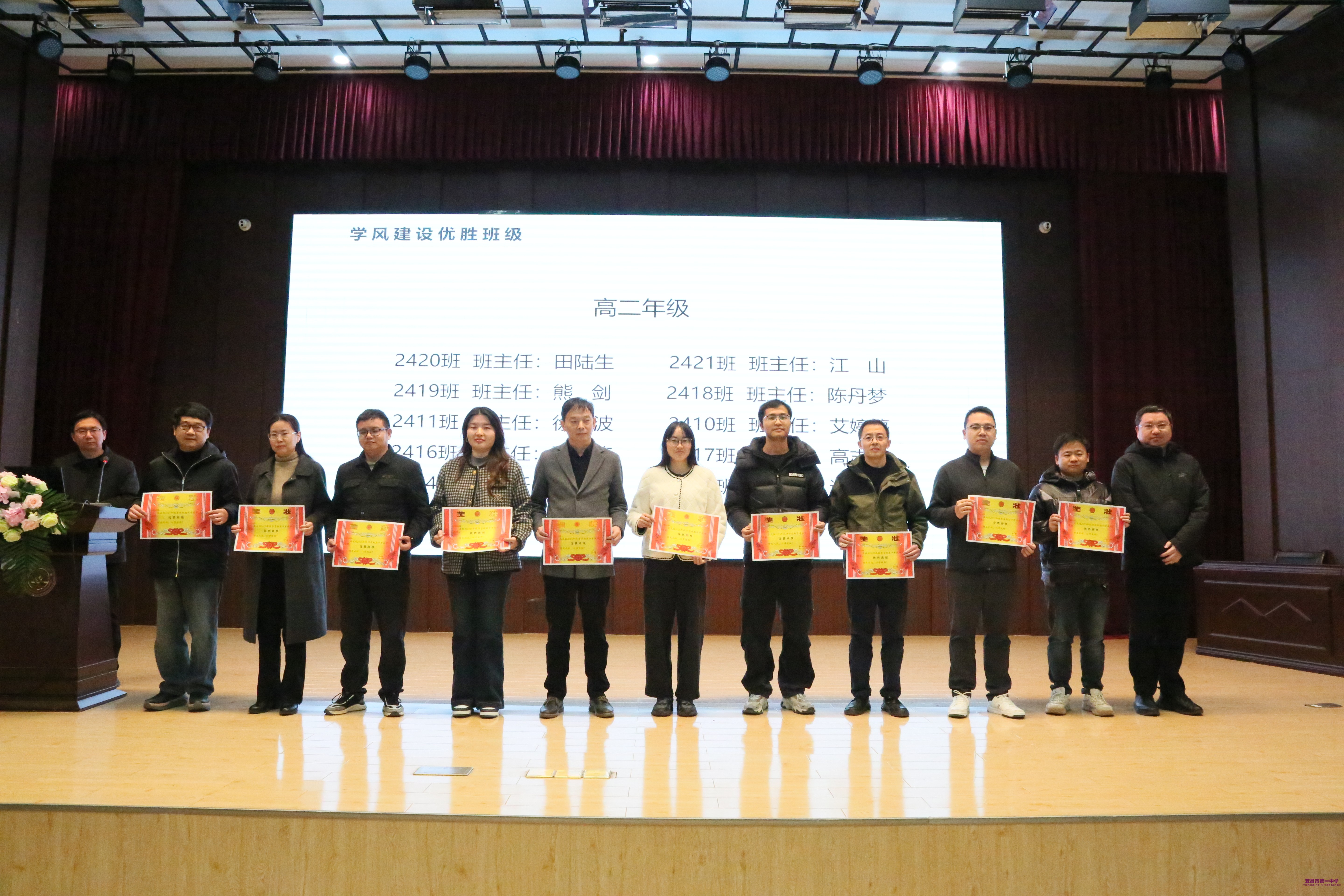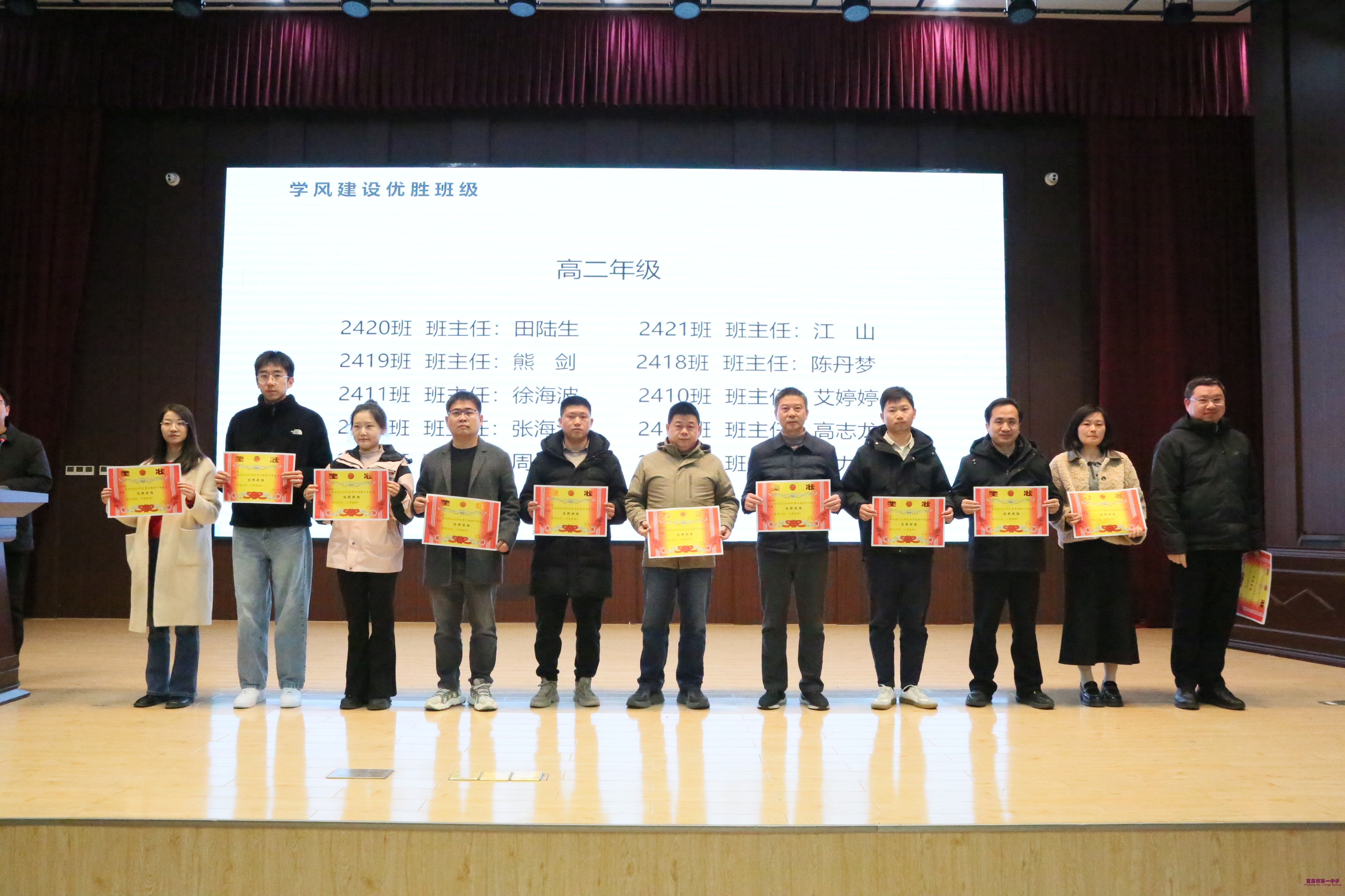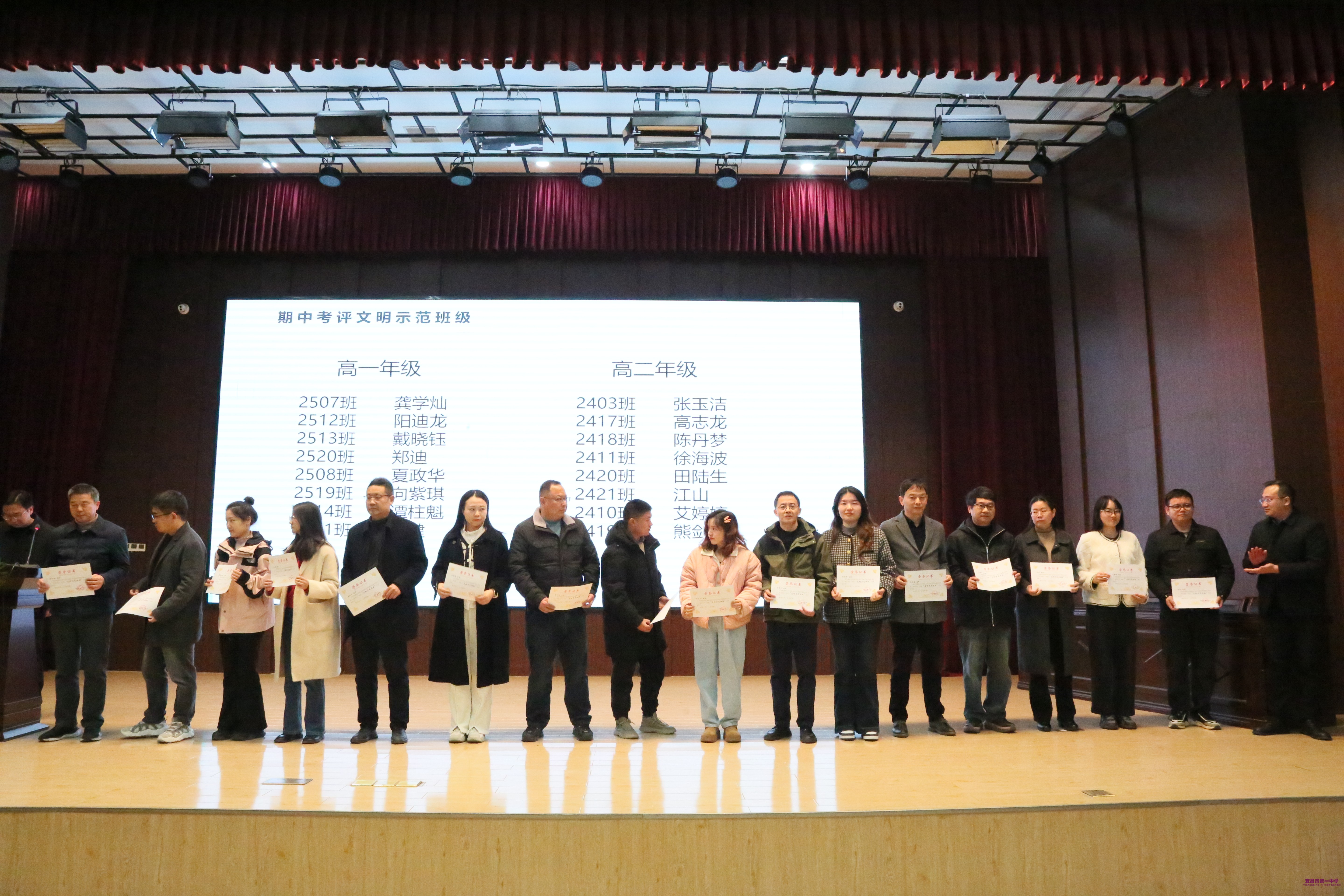 学校副校长黄文坚、副校长余信欢、副校长舒方帅为期中考评中获得“期中考评文明示范班级”、“优秀备课组”、“学风建设优胜班级”称号的团体以及获得最满意教师、优秀试卷、优秀论文的个人进行颁奖。
