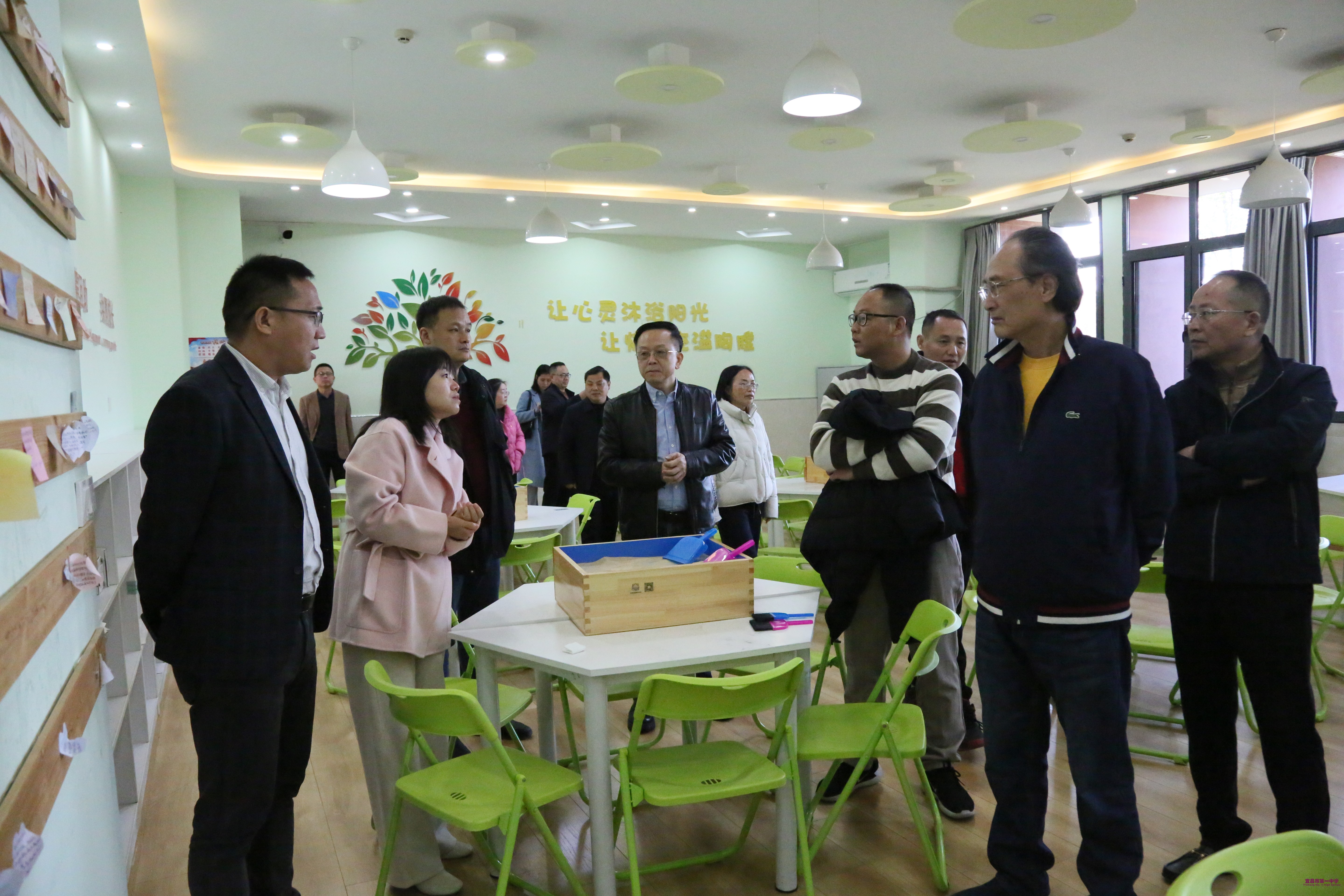 在学生成长发展指导中心,学校心理健康教研组长周晓辉为考察团详细介绍了中心在心理健康教育课程建设、学生心理疏导服务、师资队伍培养等方面的工作举措与成效,展现了学校以党建为引领,全方位关爱学生身心健康成长的育人理念。、