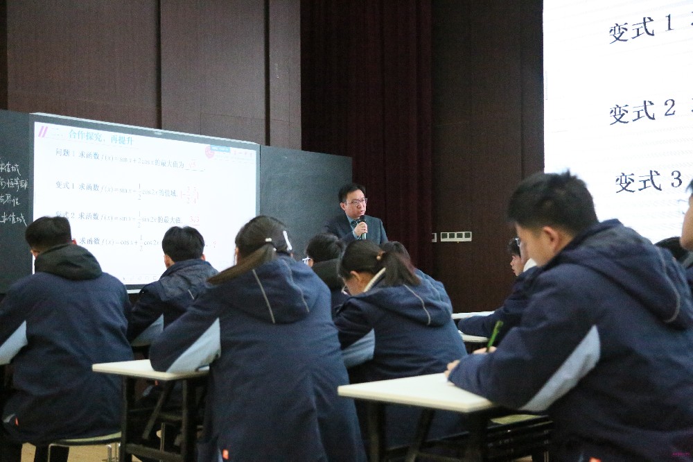 各学科展示的复习研讨课,深度践行了我校正在推进的“生动课堂”三类五步教学法,特别是在复习课型中,突出“体系建构、重点突破、分层练习、答疑解惑、总结反思”的核心环节,为构建思维型课堂提供了鲜活范例。数学学科以“三角函数值域与最值”为核心,张有友老师通过递进式问题链设计,引导学生多路径探究,实现了复习课“重点突破”与“思维深化”的目标,有效提升了学生的逻辑推理与数学建模能力;英语学科围绕“健康生活方式”主题,吴巧玲老师创设“健康卫士”角色任务,在主题意义引领下融合语言知识复现与表达实践,体现了复习课“体系建构”的情境化与“应用拓展”的交际性,强化了语言综合运用能力;生物学科以“糖尿病”为微专题,王苗郁老师采用“识病—治病—防病”的探究主线,引导学生开展案例分析并设计健康方案,贯穿了“答疑解惑”的探究性与“总结反思”的社会责任,提升了科学探究素养;地理学科聚焦“湖泊时空演变”,双珏老师引导学生运用综合思维与区域认知,分析自然过程与人文活动的互动关系,在“分层练习”中融入思维阶梯,体现了地理学科独特的育人价值;化学学科谭玉园老师从“共价键极性”这一核心概念切入,重构有机反应复习脉络,帮助学生建立“结构—性质—反应”的认知模型,贯穿了“知识建构”的系统性与“迁移应用”的思维性。