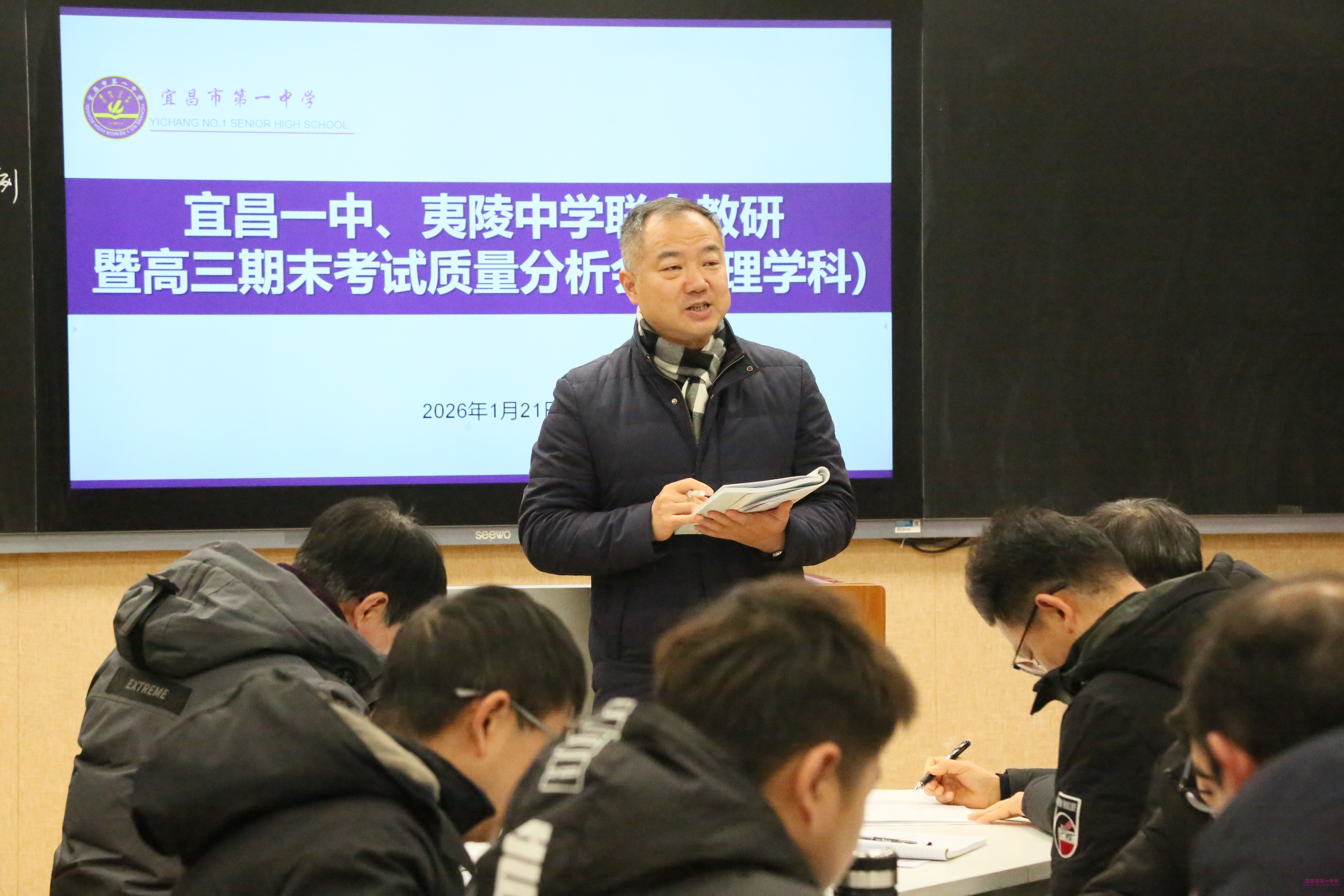 2026年1月19日至21日,宜昌一中与夷陵中学联合教研暨高三期末考试质量分析会在我校成功举办。我校承办数学、英语、生物、地理、化学五个学科活动,全市高中该五学科骨干教师齐聚一堂,通过课例展示、经验分享、质量剖析等形式进行了深入的研讨交流。