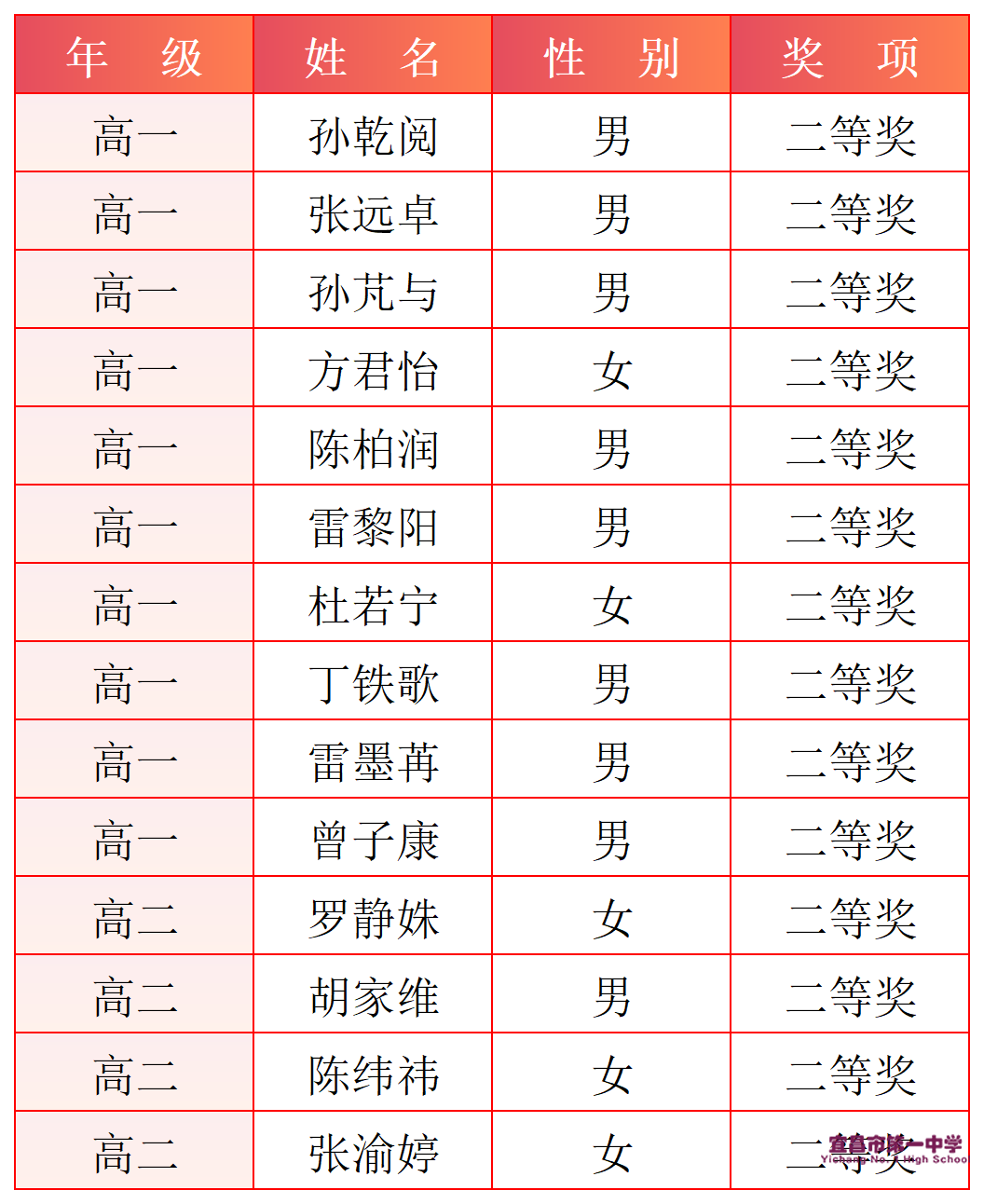一等奖获奖名单