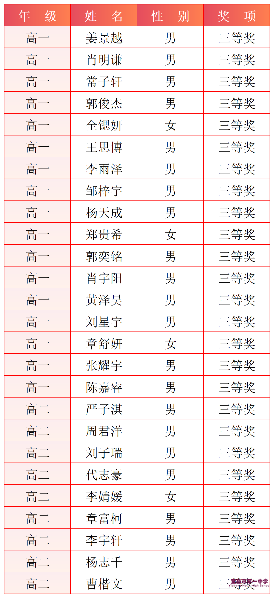 三等奖获奖名单