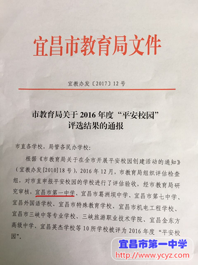 近日,从市教育局传来好消息,我校荣获市2016年度“平安校园”称号。