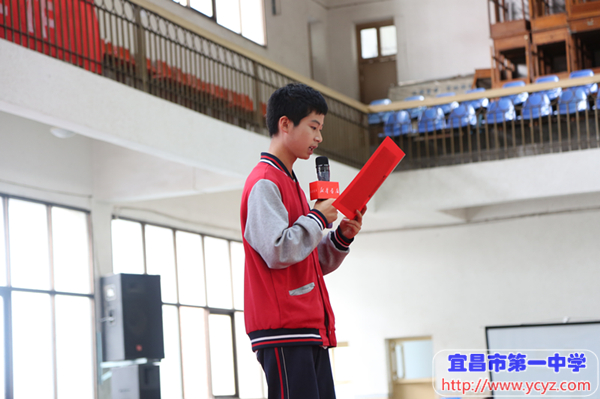 学生代表1605班陈子迅宣读“阅读经典”倡议书