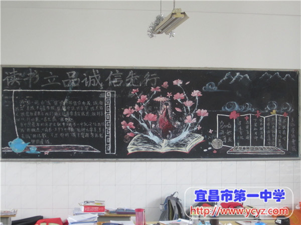 4月,我校为贯彻素质教育,特意开展了“读书之品,诚信先行”的主题黑板报活动,高一、高二各班同学均踊跃参与。