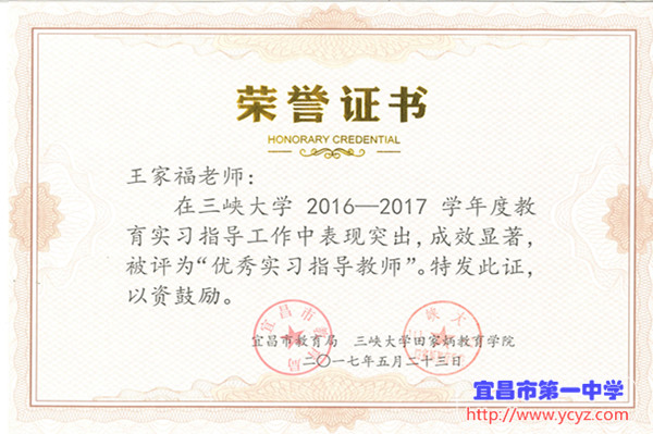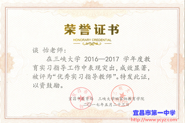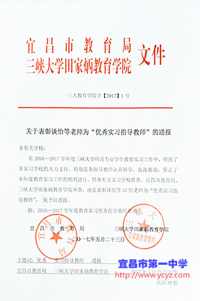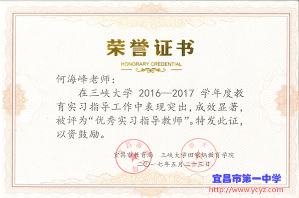 在三峡大学实习生在我校实习过程中,我校谈怡、王家福、何海峰三位教师凭借扎实与突出的班主任及学科教学指导工作,获评为2016-2017年度三峡大学优秀实习指导教师。