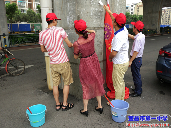 七月党旗迎风飘,一中文明创建忙。为充分发挥党员的先锋模范带头作用,更好地将“两学一做”学习教育落实到文明城市创建活动中,7月11日上午,2017届高三支部开展了以“创建文明城,党员在行动”为内容的支部主题党日活动,党员积极参与,贡献一中力量。