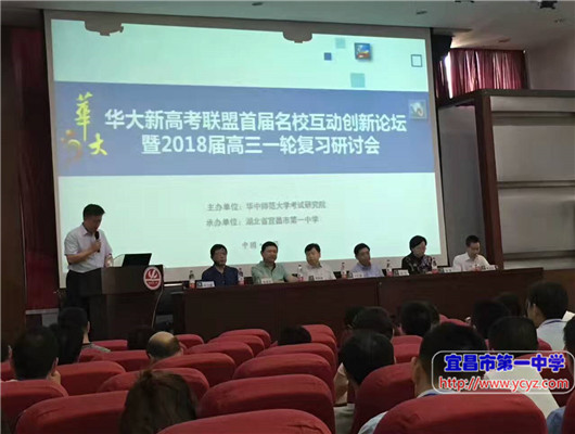 7月21日至22日,华大新高考联盟首届名校互动创新论坛暨2018届高三一轮复习研讨会在我校隆重召开。此次活动由华中师范大学考试研究院主办,我校承办。宜昌市教科院李伟杰院长、华中师范大学考试研究院王后雄院长分别在开幕式上致辞,华东师大二附中袁军校长、华中师大一附中徐惠校长、宜昌市第一中学付全新校长、湖南师大附中樊希国校长、华中师大附属龙岗中学张丽清校长、宜昌市第一中学陈鹏校长等依次作了专题报告,分享名校教学备考经验,助推联盟名校创新拔尖人才培养。