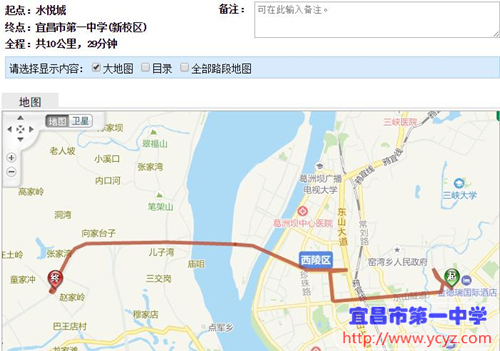 四、水悦城(开发区方向) → 宜昌市一中新校区(自驾路线图)
