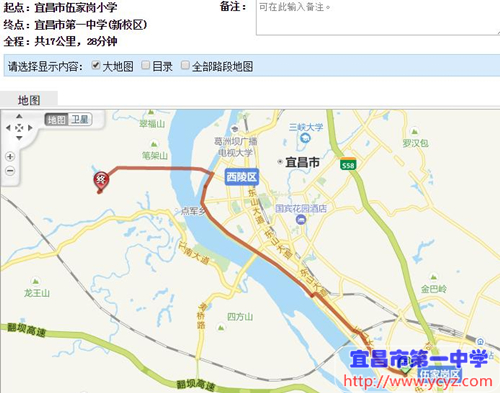 五、伍家岗小学(伍家猇亭方向)→ 宜昌市一中新校区(自驾路线图)