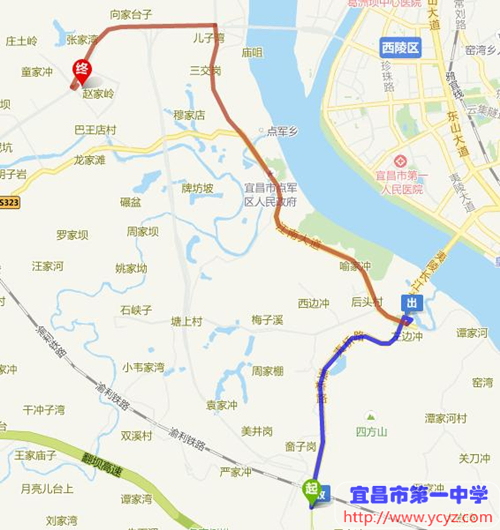 七、夷陵区方向→ 宜昌市一中新校区(自驾路线图)