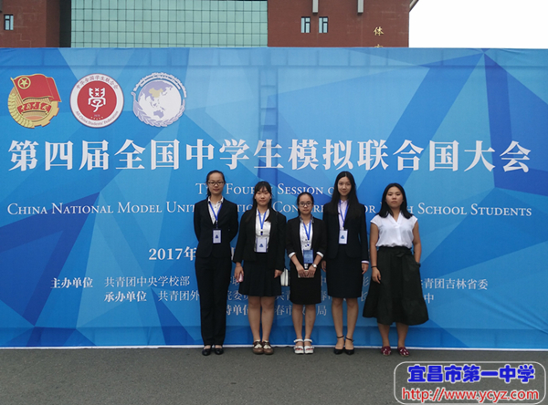 8月7日至8月10日,第四届全国中学生模拟联合国大会在长春市十一高中成功举行。来自全国28个省市、自治区、直辖市41所中学的350余名师生参加了活动。宜昌市第一中学由指导老师张鑫,学生刘昕悦、刘瞻洋、张立阳等九人组成的代表团参加了此次活动。