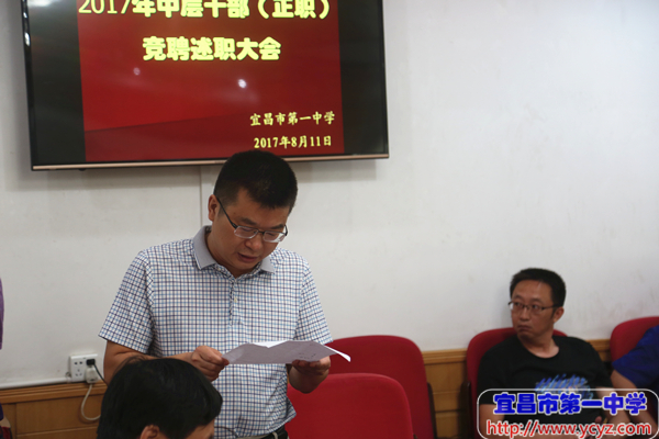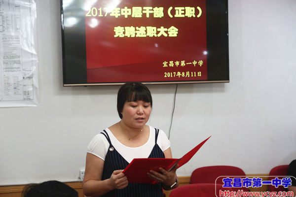 党委书记陈鹏主持竞聘会,他对竞聘方案作了简要解读,对竞聘原则、岗位、条件、程序等作了简要说明。校长付全新在会上介绍了中层干部竞聘的背景,他代表学校对老师们的积极参与表示衷心感谢,相信有全体教职员工的共同努力,百年一中将会创造更加辉煌的业绩。