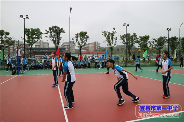 10月7日,宜昌一中排球场上彩旗舞动,锣鼓喧天,201716班的排球运动健儿们拼搏着。排球场就好像没有硝烟的战场,男生女生一个个聚精会神,目光如炬。双眼目不转睛地注视着飞滚的排球,如同猎豹盯紧野兔。牛一博同学更是不假思索,一个箭步跨向了横飞的排球,他是一匹活力四射的黑马,一支刚出鞘的利剑,他以最快的反应速度回应了对手!
