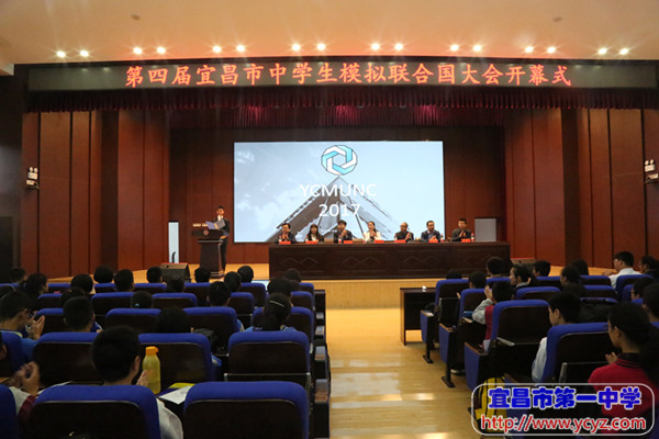 2017年10月6日上午,第四届宜昌市中学生模拟联合国大会在美丽的宜昌一中江南新校区隆重开幕。团市委组织部长何锋、学校纪委书记王桃、副校长闫明、教务处主任邹靖、学工处主任潘琴、总务处主任吴海涛、教科处主任赵勇等出席开幕式。