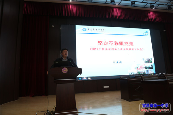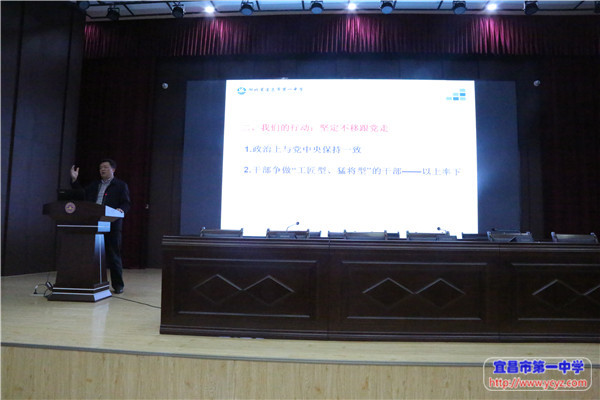 “我们的行动—-坚定不移跟党走”,付校长铿锵有力的话语,得出我们的行动指引:“一中人要在政治上与党中央保持一致,更要争做‘工匠型’‘猛将型’的干部,为百年一中的发展做出新的贡献,为十九大献礼。”