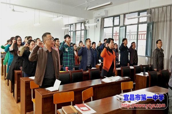 此次会议共六项议程。第一项,支部书记蔡利鹏同志带领全体党员学习党员义务,引导党员尊崇党章、遵守党章、维护党章,增强党员的党章意识。第二项,深入学习十九大精神。本月中旬,习近平总书记在十九大报告中,提出一系列新思想、新论断、新举措。我支部全体党员选取其中重要的部分进行学习。支部书记蔡利鹏同志也借此机会将自己的宝贵心得分享给全体党员,获得阵阵掌声。第三项,支部全体党员听取了省纪委关于5起高校领导干部违反中央八项规定精神典型问题的通报。支部书记蔡利鹏同志强调全体党员要引以为戒,持之以恒地落实中央八项规定精神,牢固树立“四个意识”,营造风清气正的教学育人环境。第四项,讨论《宜昌市第一中学五星级党员标准》,并严格按照五星级党员标准,评选出本季度的“五星”党员。第五项,纪委书记王桃同志对十九大报告的学习做出重要补充,并对党员后期的工作重点给予切实可行的指导。第六项,全体与会党员在支部书记蔡利鹏同志的带领下,面对庄严的党旗重温入党誓词并缴纳党费。