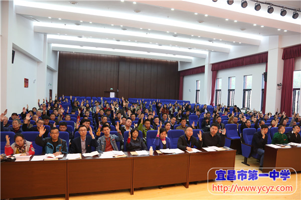 报告最后,陈鹏同志代表学校党委,号召全体党员同志,抓住新的机遇和挑战,在党的十九大精神指引下,在党的教育方针的引领下,在学校党委和行政的坚强领导下,团结一致,齐心协力,坚定不移走内涵发展之路,坚持科学发展、优质发展、特色发展、精品发展,为实现宜昌市第一中学“三步走”发展战略制定的宏伟蓝图目标而不懈奋斗。