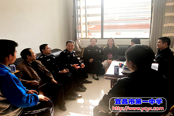 灿烂的阳光穿过银杏树树叶的空隙,一缕缕地洒满了一中校园。2017年11月8日下午,我校迎来湖北省宜昌监狱指挥中心支部书记、指挥中心主任江逢春,政治处副主任吕向阳等一行6人的到访。高一年级主任蔡利鹏老师进行了热情接待。