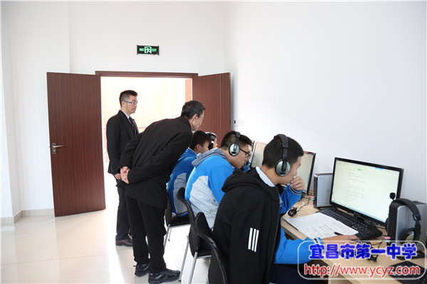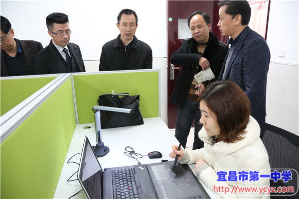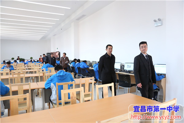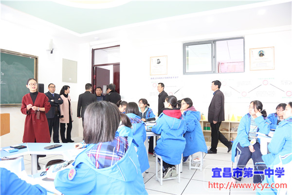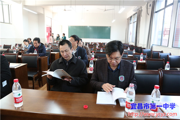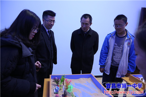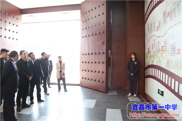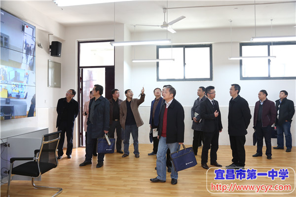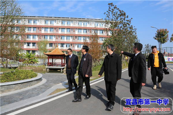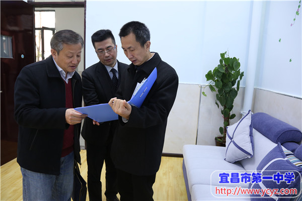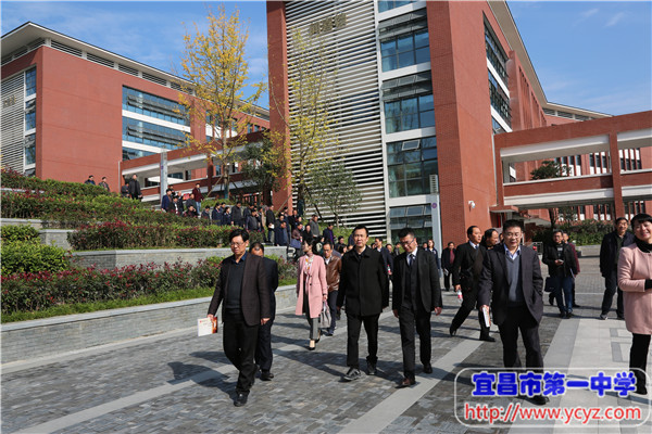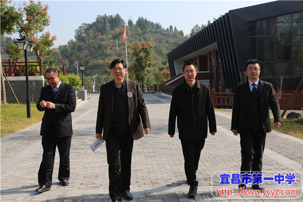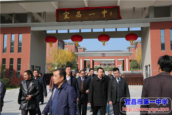 左起:宜昌一中副校长闫明、省政府教育督导室副主任督学谢新松、宜昌一中党委书记陈鹏