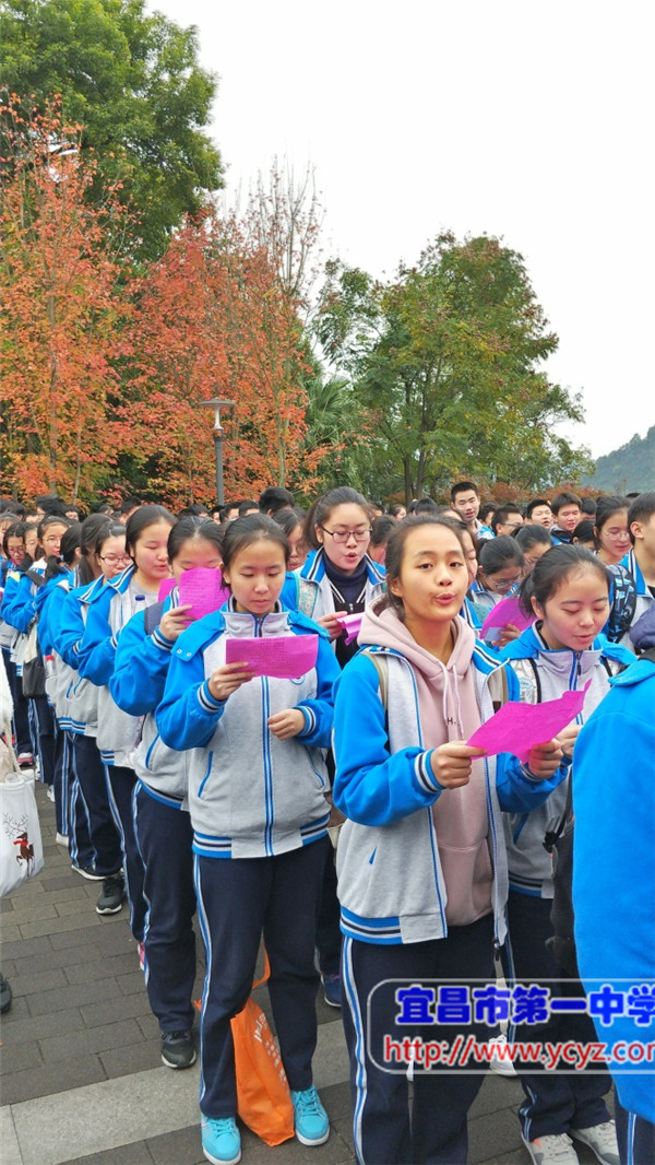 从学校经点军大道上至喜大桥到达滨江公园,临江而立,千人诵读梁启超先生的《少年中国说》:“少年智则国智,少年强则国强,少年独立则国独立……”十一月的江风带着初冬的凌厉,却吹不散满腔热诚,青春的声音在这里响彻云霄。
