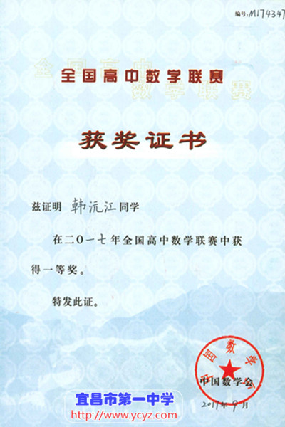从市教科院获悉,我校高二年级韩沅江同学在2017年全国高中数学湖北省赛区联合竞赛中,荣获一等奖;吴非等六位同学荣获二等奖;张泽宇等七位同学荣获三等奖。