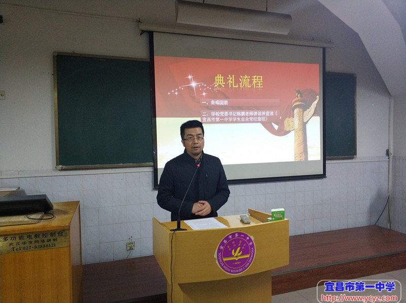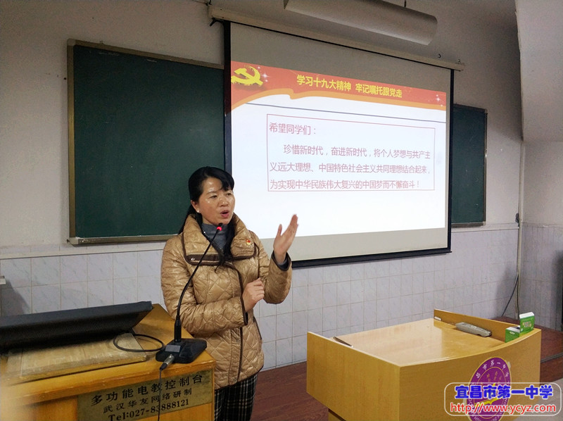 为积极响应习近平同志“培养社会主义现代化的建设者和接班人”号召,积极投身全国上下深入学习贯彻党的十九大精神热潮,在宜昌市第一中学党委的指导下,宜昌一中2015级学生新学期业余党校开学典礼于12月7日晚在老校区阶梯教室隆重举行。我校高三年级中一大批拥有较高政治理想、对党充满热情、品学兼优的200余位青年学子,参加了此次业余党校学习。阶梯教室里座无虚席,大家热情高涨,许多没有座位的同学站着完成了本次党校学习。