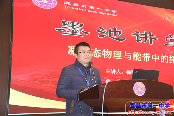 第二十一届科技节系列活动报道:墨池讲堂——凝聚态物理与能带中的拓扑 2017-12-19 15:28:28 12月15日下午,华中科技大学教授徐刚来到我校新区,在墨池书院学术报告厅为我校师生带来一场题为《凝聚态物理与能带中的拓扑》的科普讲座。教科处主任赵勇主持讲座并致欢迎辞,高一年级三百多名师生聆听了讲座。 徐刚,教授、博士生导师。2010年获中国科学院物理研究所博士学位,2010-2012年任中科院物理所助理研究员,2012-2016在美国斯坦福大学做访问研究,目前在华中科技大学国家脉冲强磁场中心从事研究工作,主要从事新奇物性和材料的第一性原理计算和理论研究。徐教授是非常规超导、拓扑物质态方面的专家,此次专程来一中讲学,对一中学子拓展视野,提升思维,开阔眼界大有益处。 徐教授在讲座中,首先强调了物理学科的重要性,他认为在物理学科的学习过程中要注重培养观察、比较、归纳、总结及发现问题等能力。“物理让人具有深入事物本质的眼光,帮助我们更好地去了解和经历这个世界”,徐教授激励青年学子时说道。随后他讲述了超导研究的历史,介绍在超导研究的漫长征途中,多位获得诺贝尔奖科学家们作出的杰出贡献。为让高中学子理解理解拓扑能带理论,徐教授列举了水杯和面包圈、列莫比乌斯带、城市地铁换乘图等众多生活中的实例,让前沿的科技理论变得通俗易懂。 交流互动环节中,一中学生踊跃提问,请教了与量子力学和相对论相关的问题。学生们探究与质疑的精神也令徐教授称赞不已。教科处主任赵勇主持讲座徐刚教授精彩讲解学生认真聆听交流互动徐教授为学生解答疑惑