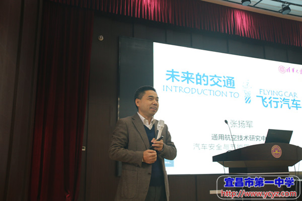 张扬军教授,湖北宜昌人,清华大学教授、博士生导师,教育部长江学者特聘教授。现为清华大学汽车安全与节能国家重点实验室副主任、通用航空技术研究中心主任,International Journal of Fluid Machinery and Systems主编。主要从事涡轮增压与涡轮发电技术及其在汽车、航空及新能源等领域应用的研究。获国家科技进步二等奖2项、国防科技进步一等奖等省部级奖9项,获首届中国优秀博士后奖、全国优秀博士后等荣誉称号,研究团队获“‘十一五’国家科技计划执行优秀团队”称号。此次张教授重返家乡,专程来一中讲学,为一中学子提供了非常难得的学习机会,使他们领略刚刚起步却又充满朝气的飞行汽车行业的前沿风光。