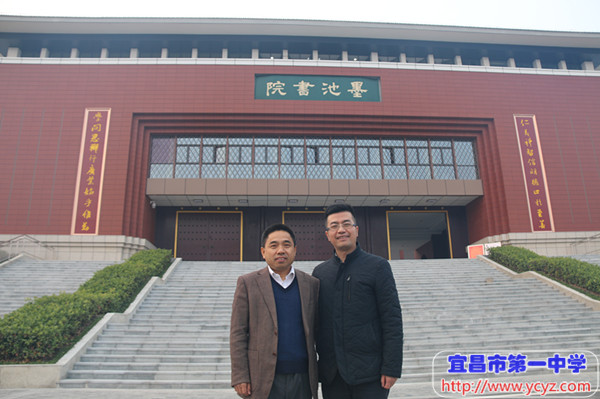 张扬军教授(左一)、陈鹏书记(左二)墨池书院前合影