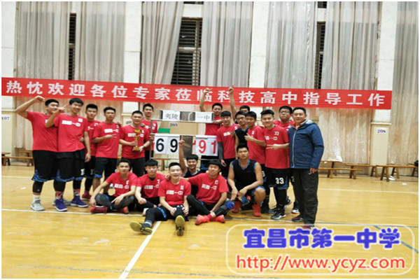 在12月4日至8日举行的宜昌市高中男子篮球联赛中,我校男篮一路过关斩将,闯入总决赛。决赛中,教练薛峰老师沉着指挥,队员们团结一心,顽强拼搏,尽情释放长期艰苦训练获得的比赛能力,最终力克对手,获得冠军!