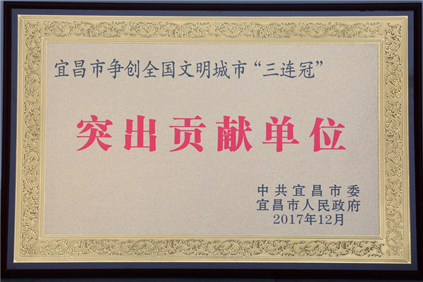 近日,中共宜昌市委下文通报:全市争创全国文明城市“三连冠”突出贡献单位和个人,我校被授予“突出贡献单位”荣誉称号。据悉,今年宜昌城区学校仅我校与市科技高中获此殊荣。另外,我校教师李昶被授予“突出贡献个人”。