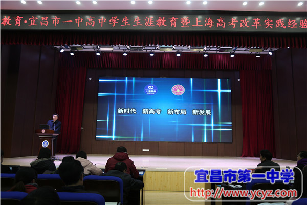 2018年1月13日,上海圆创教育﹒宜昌一中高中学生生涯教育暨上海高考改革实践经验大型公益报告会在我校学术报告厅召开。出席报告会的嘉宾有上海圆创科技有限公司总经理程稳、上海圆创生涯教育首席导师李萍教授、宜昌市教育局副局长翟志刚以及宜昌市教育战线各位领导和老师共计400余人,我校校长付全新作为嘉宾主持出席本次盛会。