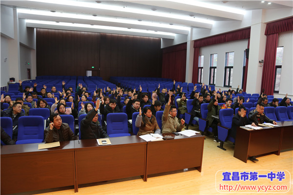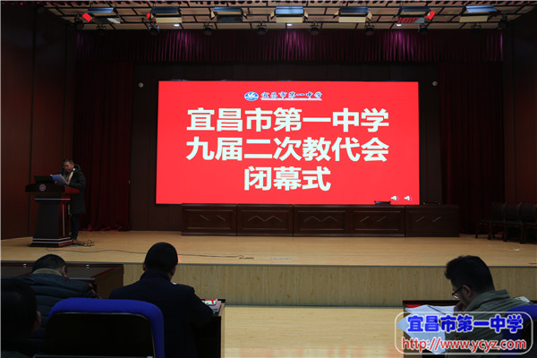 闭幕式由副校长李大海同志主持。大会秘书处林绍华同志、高皓同志、贺飙同志首先就各项文件草案修改修正情况作了详细说明,工会主席郭永寿同志就工会工作报告作修改说明,与会代表分别就《宜昌市第一中学发展规划纲要2018-2022(讨论稿)》、《宜昌市第一中学章程(讨论稿)》、《宜昌市第一中学第三轮岗位聘用工作方案及评分细则(讨论稿)》举手表决,监票人、教师代表上台报告表决结果,李大海校长宣布表决通过。