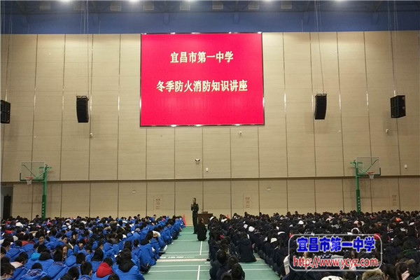 1月15日下午,我校全体师生齐聚美丽的宜昌一中新校区体育馆,认真聆听了武警宜昌消防支队点军大队陈华队长主讲的冬季防火消防知识讲座。陈队长从预防火灾是每个公民的责任、如何有效预防火灾、发生火灾后如何逃生三个方面进行了互动式的讲解。最后,在体育艺术中心外的广场上进行了灭火现场演示,并让学生切身体验灭火器正确使用,让与会师生接受了一次深刻的消防安全知识教育。
