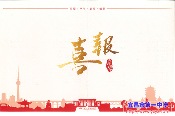 近日,我校收到华中科技大学发来的喜报。喜报称,我校多年来向华中科技大学输送了大批品学兼优的学生。这些学生在华科大的精心培养下,锐意进取,再接再厉,全面发展,取得了优异的成绩。他们的成长凝聚了宜昌一中多年的心血,借此机会,谨向我校和获奖同学表示热烈而诚挚的祝贺!