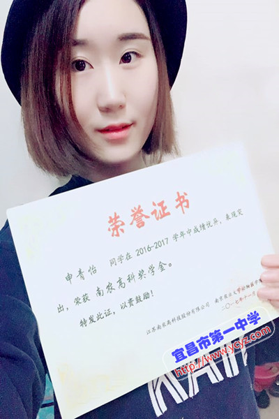 近日,我校收到南京农业大学发来的喜报。喜报称,我校2013届毕业生申青怡同学在南京农业大学学习期间,勤奋好学,刻苦钻研,荣获2017年度三好学生奖学金。他们的成才凝聚了宜昌市第一中学老师们的辛勤培育和殷切期望,特向我校报喜。