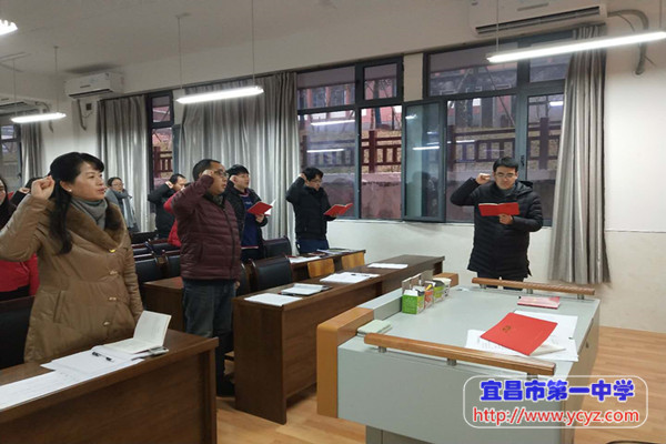 会议第四项宣读入党誓词。与会党员在支部党员裴伟同志的带领下,面对庄严的党旗重温入党誓词并交纳党费。