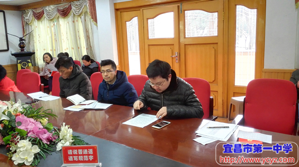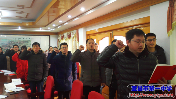 在完成交纳党费,重温入党誓词,集体诵读党章的规定程序后,全体党员根据《宜昌市第一中学五星党员标准》,结合自身情况制定个性标准,以量化打分的方式,推选2017年第四季度“五星”党员。随后,支部书记舒方帅同志向支部全体同志进行2017年度述职,全体党员现场对支部书记述职情况进行民主测评。
