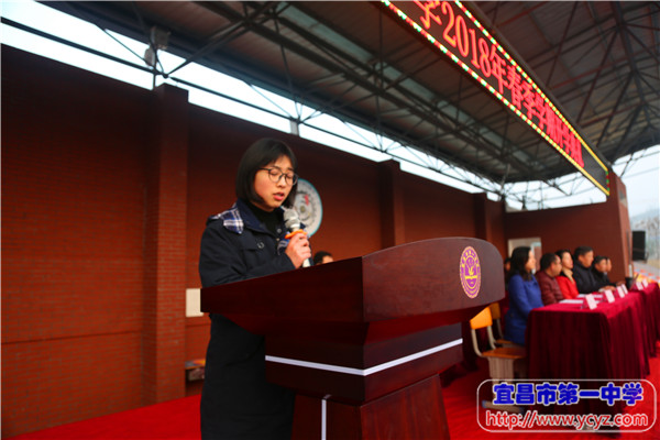 家长代表、1720班张宇嘉同学妈妈田国敏女士作了主题为“努力才有未来,坚持方能收获”的发言,她用三句话“我相信,我选择;我选择,我相信”“不负青春,努力奋斗”“宁静坚守,方能收获”,启迪孩子们“放下你的浮躁,放下你的惰性,放下你的三分钟热情,再努力一把!再坚持一下!坚守初心,行你所行,无问西东!”,并祝愿各位老师身体健康,工作顺利, 祝福全体同学学业有成,梦想成真, 祝愿宜昌一中更好更强,从一个辉煌走向另一个辉煌!