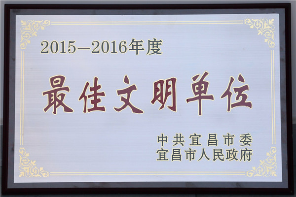 我校荣获宜昌市2015-2016年度最佳文明单位 2018-03-09 15:20:24 近日,我校被中共宜昌市委、宜昌市人民政府共同授予2015-2016年度最佳文明单位。据悉,全市教育系统仅我校一家获此殊荣。