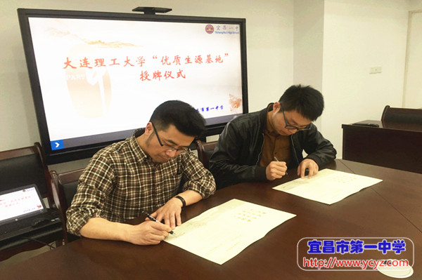 大连理工大学湖北招生组组长董帅教授将“大连理工大学优秀生源基地”的牌匾授予我校。陈鹏书记代表我校与大连理工大学签署了“人才培养合作协议”。双方就自主招生政策、人才培养模式、暑期研学活动等方面进行了深入探讨,并表达了深化两校合作的共同愿望。