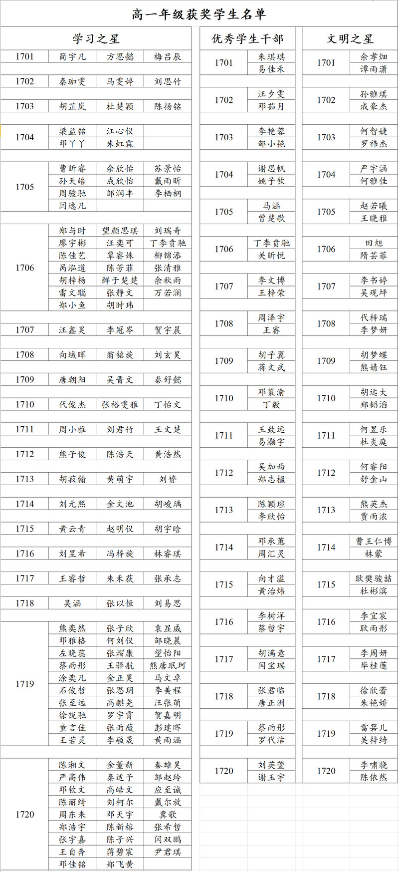 同道积极心,砥砺共奋进——高一年级举行阶段性集体讲评 2018-04-15 11:39:14 韶华无价,我们快速奔走;青春有情,我们携手同行! 4月11日下午,我校高一年级全体学生在体育艺术中心召开了高一年级阶段性集体讲评。 讲评会由高一年级副主任唐志海主持。会上,唐主任对年级学生近期的整体表现给予了充分肯定,并表彰了“学习之星”、“文明之星”及“优秀学生干部”等共二百余名优秀学生。 接着,1706班的陈佳艺与1719班的熊奕然同学作为优秀学生代表,与全体学生进行学习生活经验交流。 最后,副校长闫明做了主题为《同道积极心,砥砺共奋进》的讲话,对全体高一学子的学习生活提出了殷切期望和具体的要求。在场学生反响热烈,掌声不断。 草长莺飞孟春日,学子奋进正当时!在这明媚的春天让我们共同祝愿宜昌一中17级学子继续享受学习,勤学乐学,享受生活,阳光成才! 高一年级副主任唐志海老师主持会议 高一全体学生参加会议 学生代表陈佳艺同学做学习交流 学生代表熊奕然同学做学习交流 副校长闫明老师发表讲话 高一年级学生获奖名单