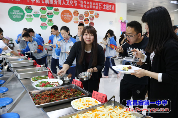 4月17日下午,宜昌市一中第七届服务育人文化节厨艺擂台赛在新校区校园餐厅一楼隆重举行,10多位学生家长和高一年级的60多名学生品尝了厨师们精心烹调的佳肴,色香味俱全的美食获得了品尝者们的一致赞扬。本次比赛不仅仅有校园餐厅的厨师们参加,还有5名学生家长现场一展厨艺、老师们和同学们学拉拉面,这些活动促进了学校食堂和家长、师生们的交流与信任!