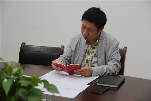 行政支部举行四月主题党日活动 2018-04-26 16:22:42 4月25日,我校行政支部举行主题党日活动,主题为“学习践行习近平新时代中国特色社会主义思想”。 首先,同志们积极缴纳党费,在张霜同志带领重温入党誓词,回顾申请入党时的思想激情和奋斗追求,回顾入党宣誓时的庄严承诺和坚定决心,并集体诵读党章。 接着, 支部书记朱圣柱同志给同志们讲党课,学习习近平新时代中国特色社会主义思想,学习《市教育局直属机关党组织党建基础工作规范达标年实施方案》、《市教育局“走基层、解难题、办实事、惠民生”主题实践活动方案》。 最后,学校党委委员、工会主席郭永寿同志对本次活动作点评,他指出,同志们不仅要认真学习,还要深刻领会党中央和各级上级党组织传达的精神,全面贯彻党的基本理论、基本路线、基本方略,更好地引领党和人民事业发展,以实际行动履行党员义务和责任。 支部书记朱圣柱同志讲党课重温入党誓词学习党章党委委员郭永寿同志点评