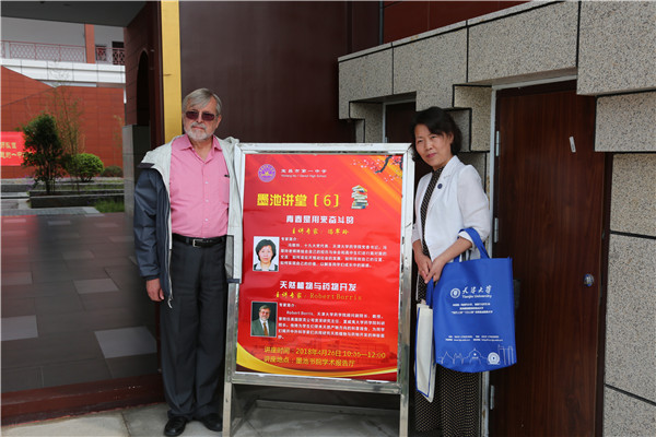 天津大学药学院党委书记冯翠玲一行到访我校 2018-04-27 10:06:12 4月26日,天津大学药学院党委书记冯翠玲教授,药学院顾问副院长Robert Borris教授特意来到我校,在墨池讲堂为我校学子讲学,我校副校长闫明接待并陪同。 讲学开始前,两位教授参观了我校校园。参观过程中,冯教授感叹道:“宜昌一中真的高大上啊,校园依山而建,设计布局十分合理,与天大风格还真的有些相似啊”,并对我校美丽的校园环境、深厚的文化底蕴和卓越的办学业绩大加赞赏。 左起:天津大学药学院党委书记冯翠玲教授、药学院顾问副院长Robert Borris教授、宜昌一中副校长闫明